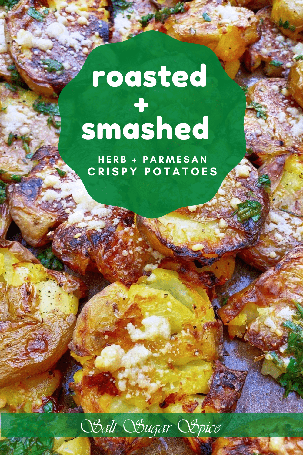 Jump to RecipeThese highly addictive baby potatoes are boiled, smashed and roasted with grated parmesan cheese until golden and crisp dressed with a tangy fresh herb vinaigrette. Perfect for snacking, as a side, or even as a main!
