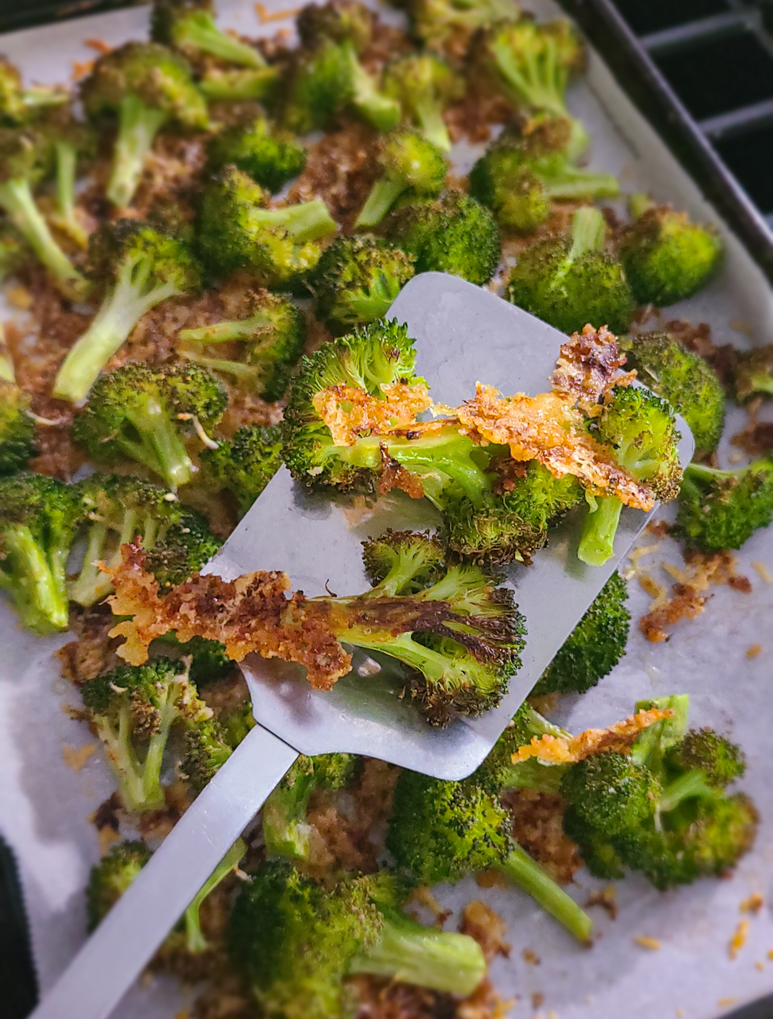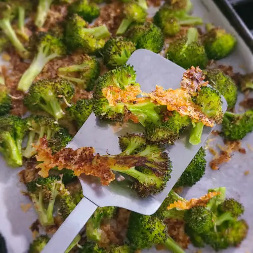 Crispy, slightly charred broccoli florets oven roasted with crunchy Parmesan cheese and Panko breadcrumbs- this vegetable side dish takes on a whole new level of deliciousness!Jump to Recipe